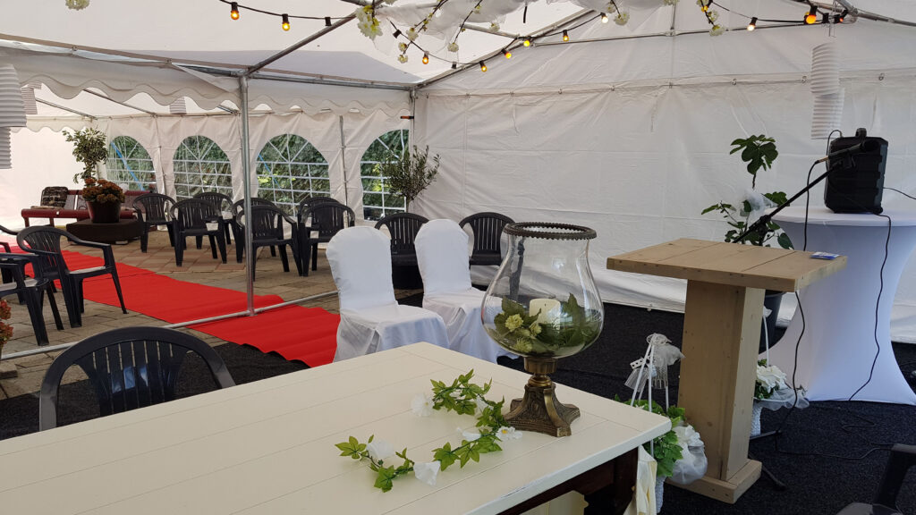 Het Dorpshuis verhuurt ook 2 grote party tenten, om op een locatie naar wens ook een verzorgd feest te kunnen geven.